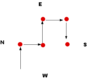 つぎはまたE方向に進むとひとつあります。ここらで川に入ります。S方向を向くとひとつあります。