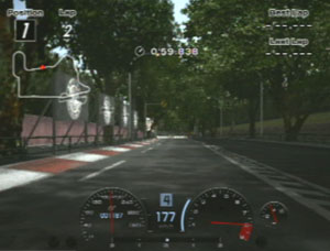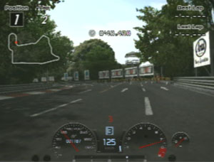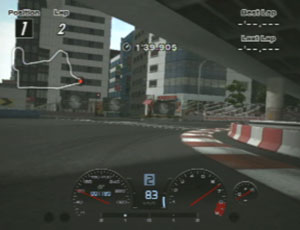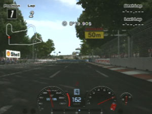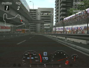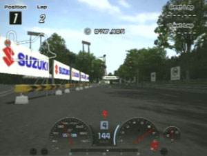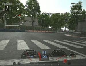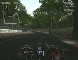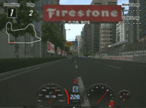FireStoneの看板あたりでブレーキ開始。インによりつつ2速まで落としてクリッピングポイントをすぎたら全開。