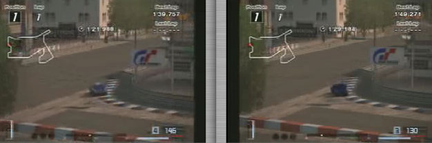 最終シケインの速度がかなりちがいます。が、ノーマルのほうは、わたしのミスでうしろがスライドしたからタイムロス。