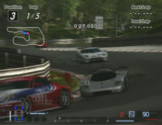 で、こんかいも自分より速そうなクルマを無理矢理ピットインさせる作戦でいくことに。これってけっこうおもしろい。