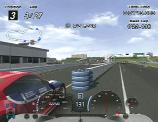 遊びすぎてミスしました。ゴールライン直前にピットがあるのですが、comカーをそこに押し込めるというのをやったら自分までピットに入ってしまいました。二回目は26周目にやったらピットのコンクリートにあたって停止。。。やりなおすことに。
