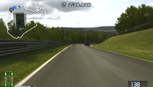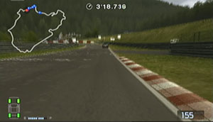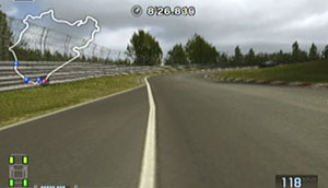 左の縁石がとぎれた直後から減速して、インについて130kmぐらいで右コーナーをクリア。