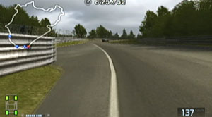 ここで減速して135kmぐらいでつぎの右コーナーをクリア。その後は長ーーい直線なので脱出速度最大をめざします。