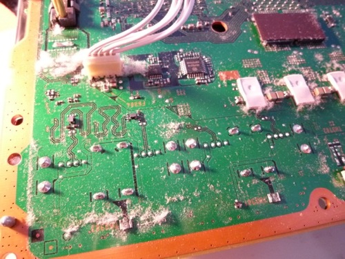 CPU基盤、ここもほこりがいっぱい。掃除します。