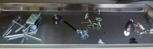 ねじは、磁石にくっつけて保存しておきます。紛失予防です。