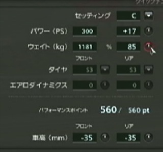 最大に軽量化して、残りパワーアツプして560ptに合わせました。