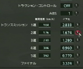 前半のS時では2速で走れるように2速の最高速度を175前後にしました。