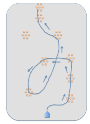 パイロンはランダムに置かれているように見えるが、
