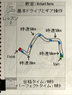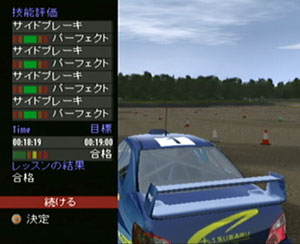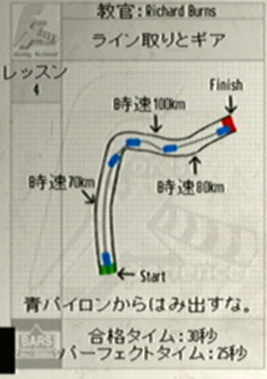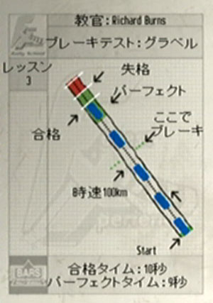 これはラリーならではのテクかな。図にはフリックしてパワードリフトを開始って書いてあるけど、フリックってなんですか? 説明がないんですけど。これって不親切ですよね。とりあえずアクセルOFFからのパワードリフトってことで理解しました。13秒以下で走りきっても途中で60km以上だしたら不合格になりました。スピード違反もあるようですね。