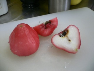 ガリっとしたところはリンゴっぽい食感だけど、意外とスポンジみたいな部分があります。白いところは味はなくて、赤い皮のあたりがむちゃくちゃ酸っぱい。。。アセロラみたいな酸っぱさです。 |