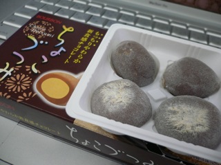 もちもちっとした歯ごたえから、中身のチョッコがちょっとだけ甘い。雪見大福みたいなかんじです。日本茶でもコーヒーでも紅茶でも合います。