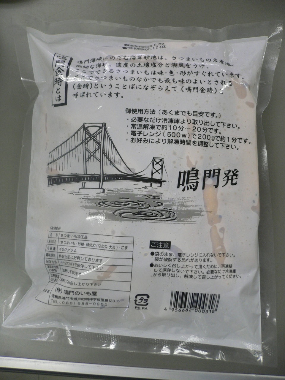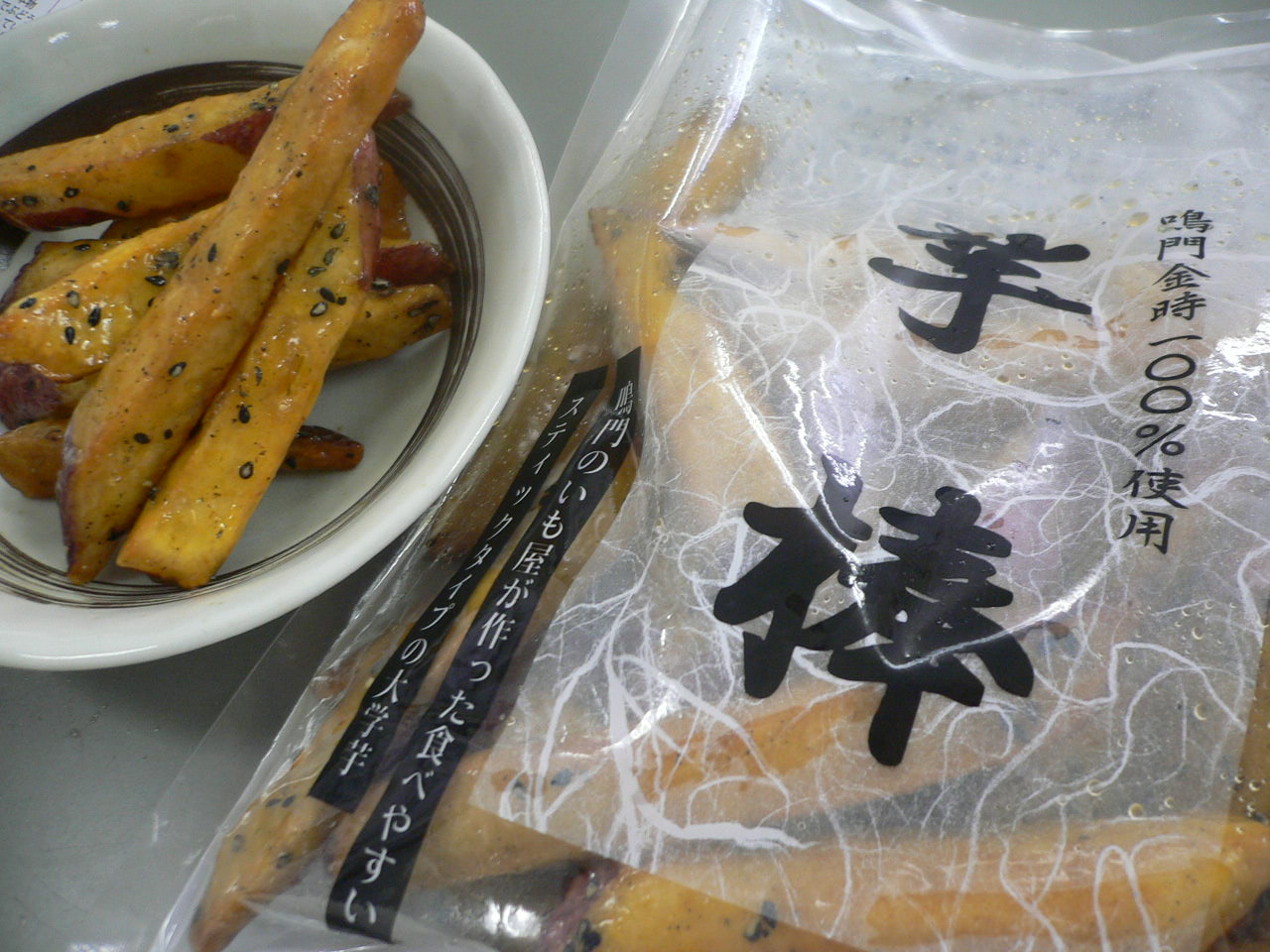 大学芋なんですけど、徳島の鳴門の名産品の「なるときんとき」を使ってます。きんとき自体とってもコクがあって甘いお芋なので、そのうえに砂糖の蜜がのっかって美味です。