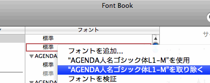 不要なフォントの上で右クリックして「取り除く」を選びましょう。