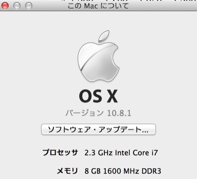 OS10.8がインストールされてます。