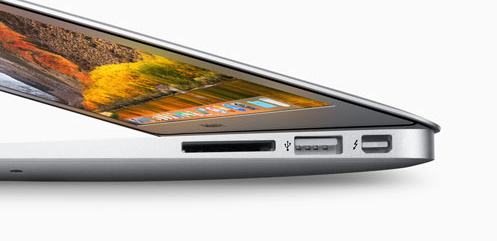 MacBook Airは、USBポートが2つ、Thunderbolt2つ、SDXCカードスロットありと、拡張性が高い。