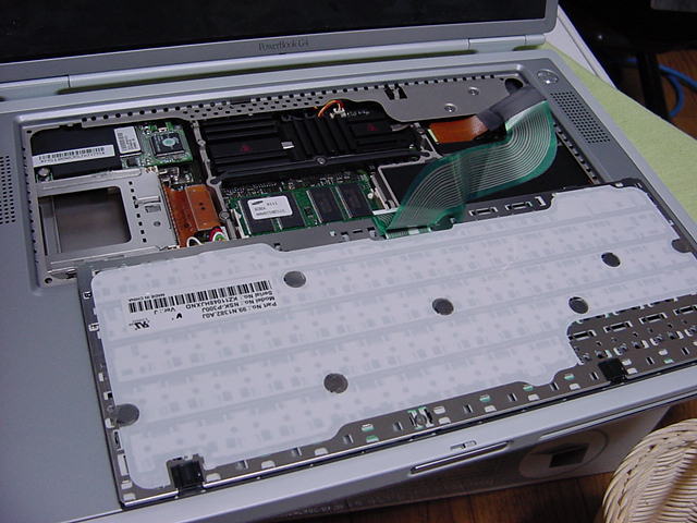 つぎに、下に押し込む。カチっとロックされたらOK。これで増設終了。キーボードを取り付けたら完成。 |