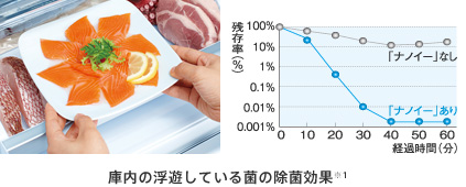 「ナノイー」が全室に行きわたるから、いろいろな食品を新鮮・清潔に保存できます。