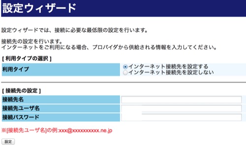 プロバイダの情報を入力します。