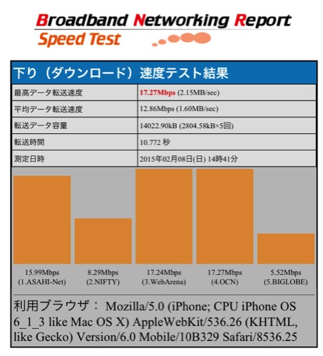 iPhoneをWi-Fiで接続して、iPhoneのスピードテストしてみました。