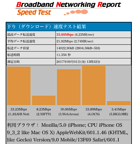 たしかに東京に比較するとLANの速度は2倍ぐらい高速だ。
