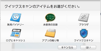 起動ディスクの空き容量が6GBぐらいになってきて、アプリをたくさん起動していると「空き容量がありません」みたいなメッセージがでてきてやばいことになる。アプリを終了できなくなって強制終了するしかなくなるのだ。