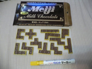 組み立てている途中、形がわかりにくいのと、写真を撮っても形の判別がむずかしいので、黄色のマーカーで輪郭を塗りました(^ ^)b