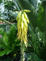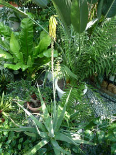 アロエの花??ですかねえ、近くで見るとバナナの実みたいな形のつぶつぶっぽいかんじの葉みたいな。