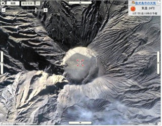 つづいて桜島の火口の写真です。googleのほうが拡大率が大きいです。