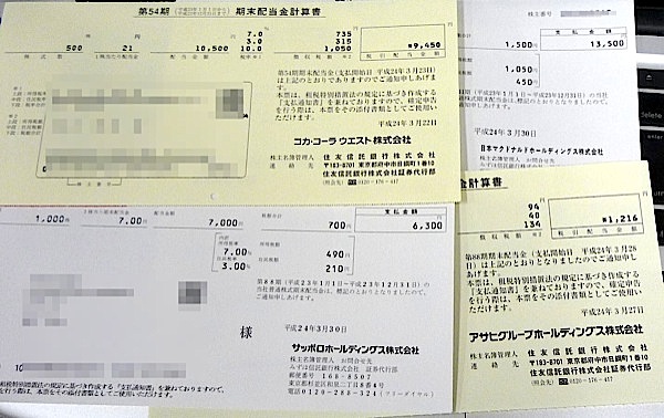 サッポロ、アサヒ、マクドナルド、コカコーラの配当金キタ━━(゜∀゜)━━!!!