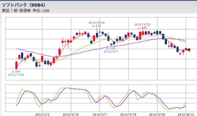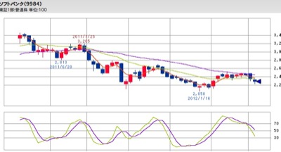 例としてソフトバンクの日足のチャート