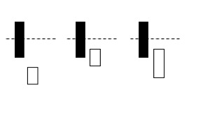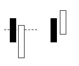 入り首・・陰線の翌日、前日の終値よりは上だが、中心価格までには及ばない形。