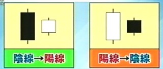 底値圏で陰から陽のはらみ線になると上昇に転じるサイン。