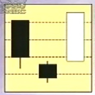大きな陰線の翌日、離れてコマがでて、その翌日に、大きな陽線がでる。