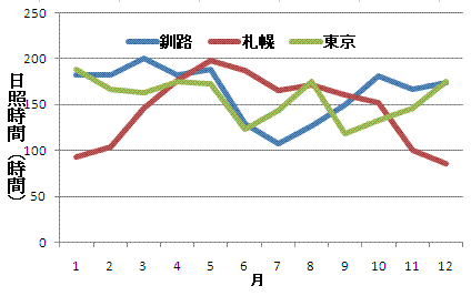 そして、日差しも霧が多い月は少なく、その他の冬は晴れが多いデータがあります。