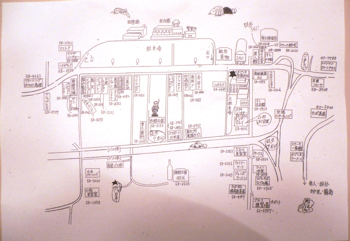 フロントでもらった手書きの近隣マップがいいかんじです。