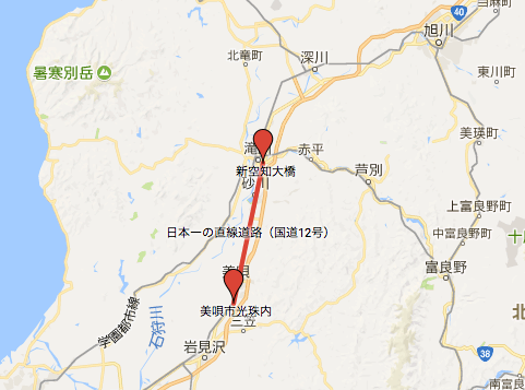 奈井江、日本で一番直線が長い国道、直線道路日本一