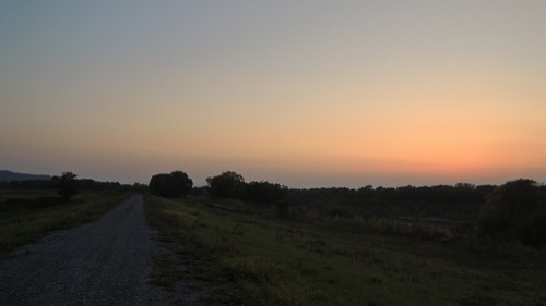 左手に夕陽だ、どこかにクルマを停めて撮影したいす