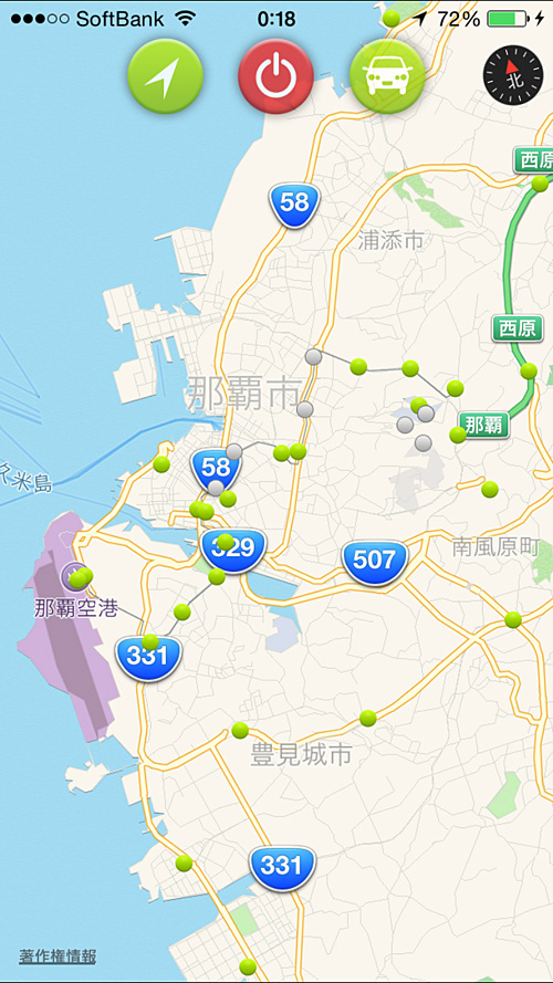 まず那覇のある南部は、都市が多くてクルマと信号が多くて走りにくい。
