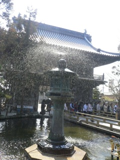山門を入るとすぐ左に手水鉢がありその後に鐘楼がある。