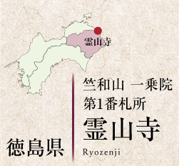 四国八十八ヶ所霊場の全行程はおよそ1460キロ、365里におよぶ。この霊場を札所番号の順に巡拝する遍路には、ここが「発願の寺」、「同行二人」の長 い旅となる。縁起によると、聖武天皇(在位724〜49)の勅願により行基菩薩が開創された。弘仁6年(815)、弘法大師が四国の東北から右廻りに巡教 された際、この地で衆生の88の煩悩を浄化し、また衆生と自らの厄難を攘はらって、心身の救済ができる霊場を開こうと37日間の修法をされた。その時、仏 法を説く一老師をたくさんの僧侶が取り囲み、熱心に耳を傾けている霊感を得た。大師は、その光景が天竺(インド)の霊鷲山で釈迦が説法をしていた情景と似 ていると感じとり、インドの霊山を和国(日本)に移す意味で「竺和山・霊山寺」と名づけられた。