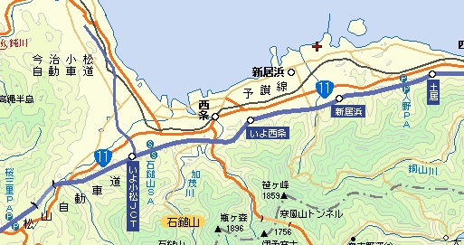 入野PAは松山市と徳島市を結ぶ松山自動車道のちょうど中間あたり、土居ICのすぐ西です。