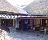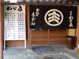 ここの立地条件は最高です。屋島の登り口にある四国村という観光地のすぐ前です。四国村というのは、江戸時代のころの民家や建造物を保存している観光名所なのですが、この「わらや」も古い日本風の店構えです。店の前庭には大きな水車を配して古き時代を演出すると同時に、周囲の美観と協調させています。