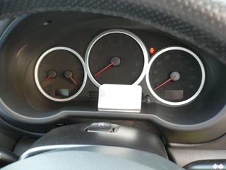 テプラーでrpm, V,in℃, km/hなどの単位をメーターの表示板の周囲に貼付けました。-->メーカーさん、これぐらいは印刷しといてもらいたかったね。