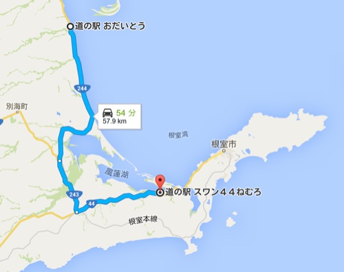 現在地です。納沙布岬まで73km。すぐそこですね。