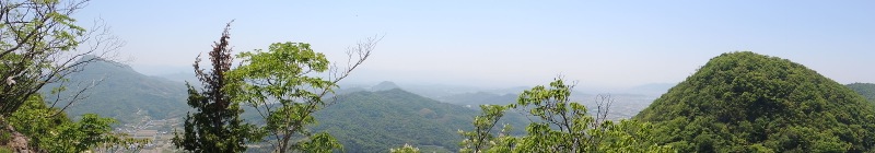 我拝師山の中腹に奥の院の屋根がちらりと見えてます。
